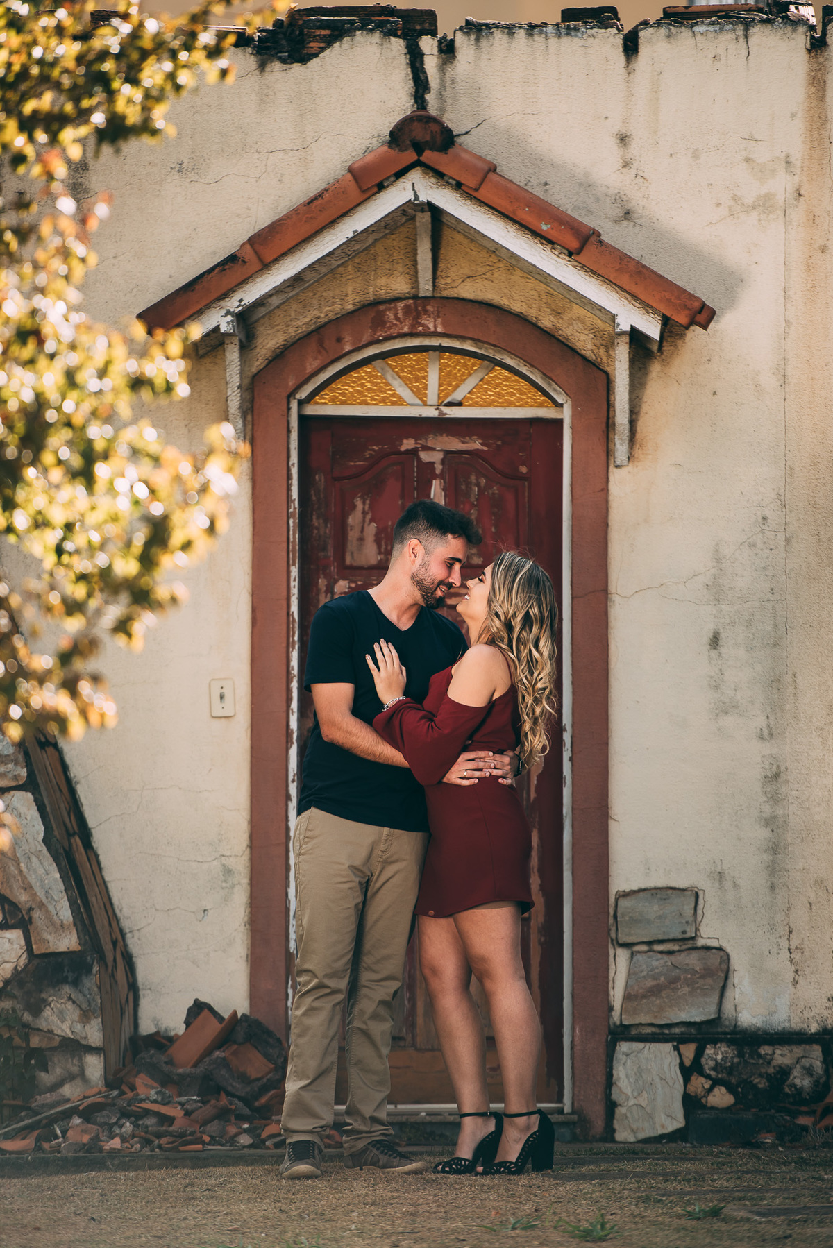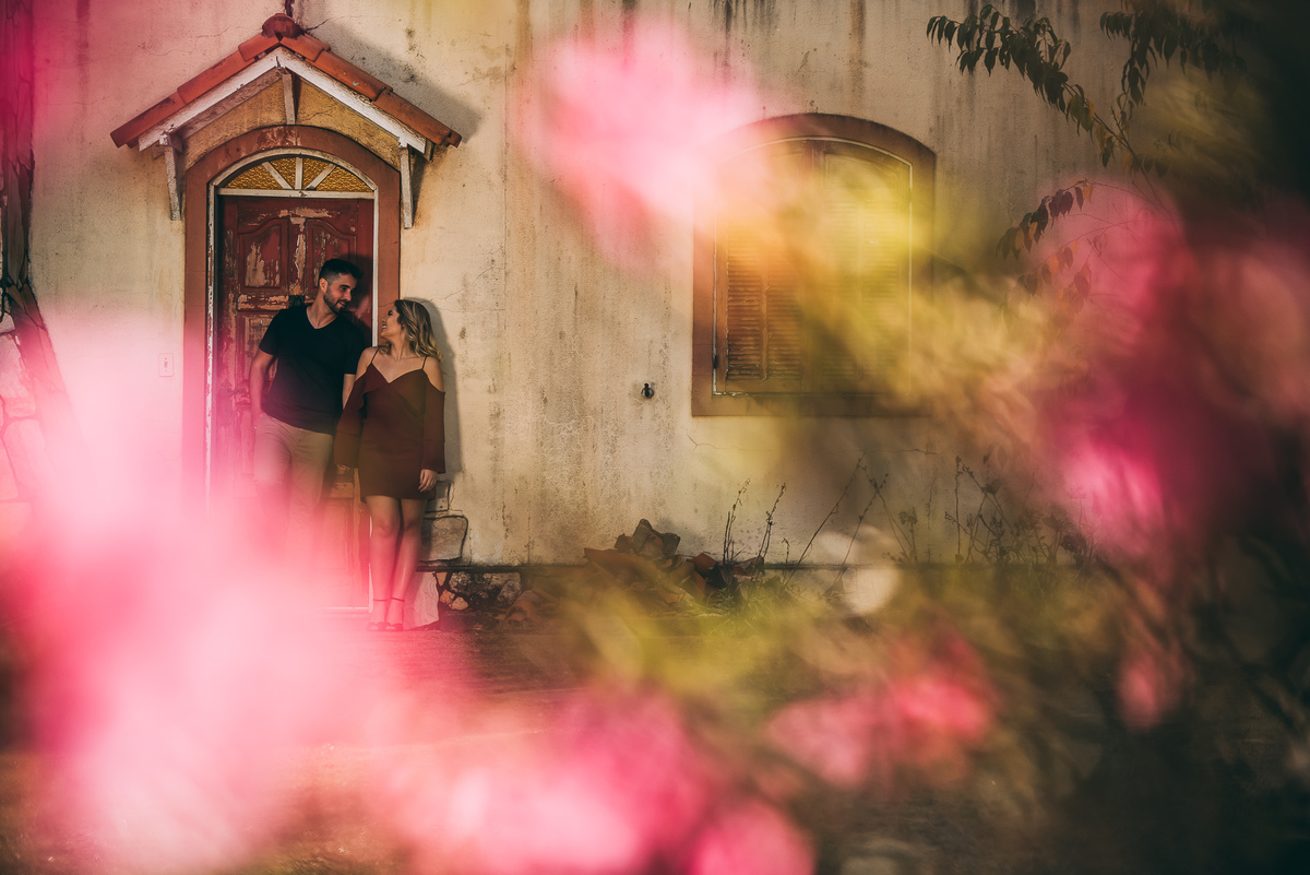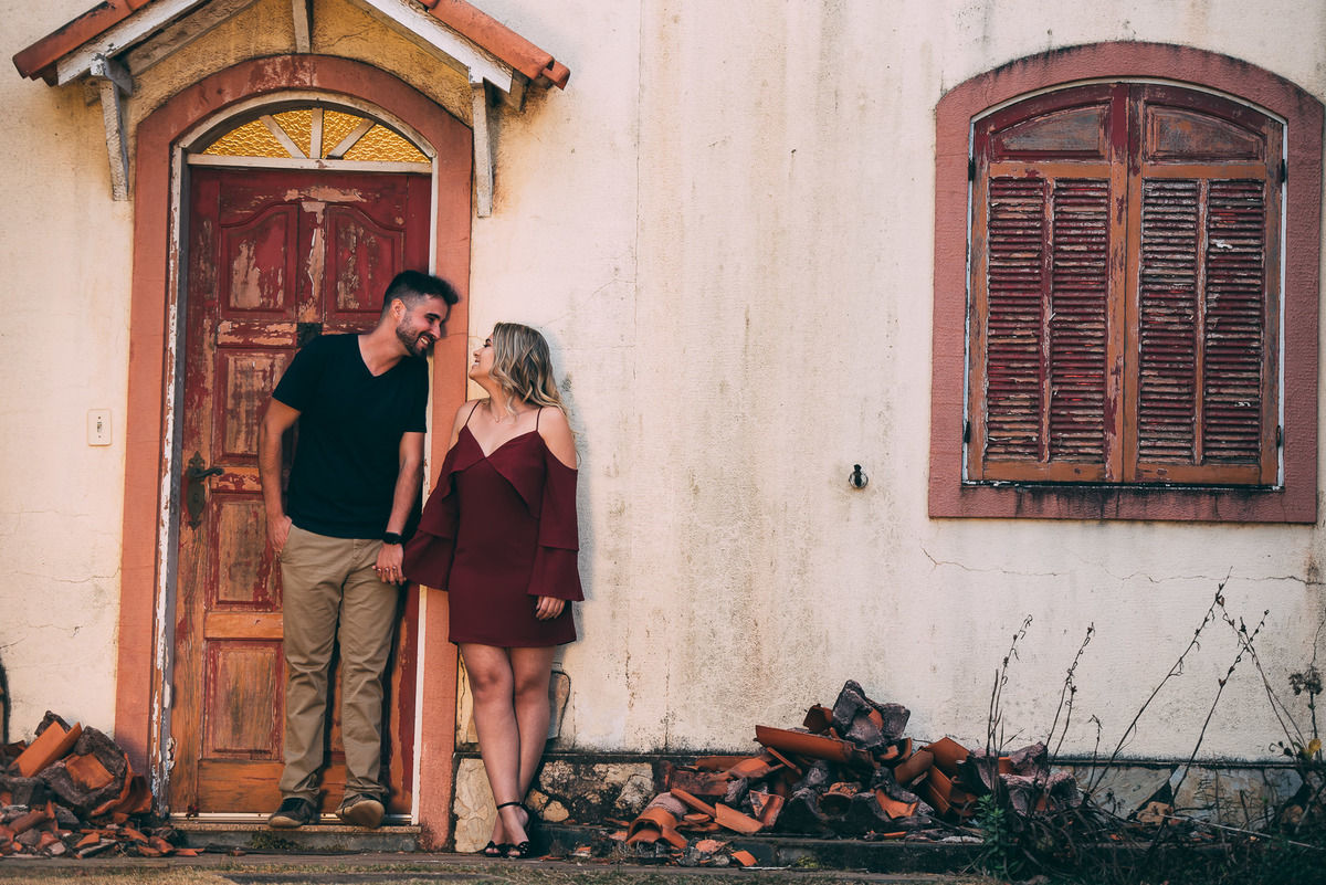 Entre um caminho e outro encontramos algumas casinhas lindas, abandonadas e bem cuidadas, aproveitamos para utilizar de composição no ensaio deste casal que transpira felicidade.
